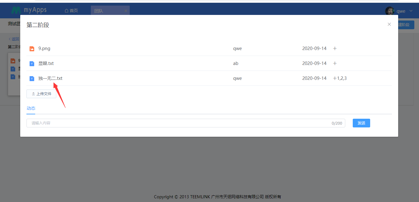 团队成员以及企业知识管理员可在动态栏下留言进行互动