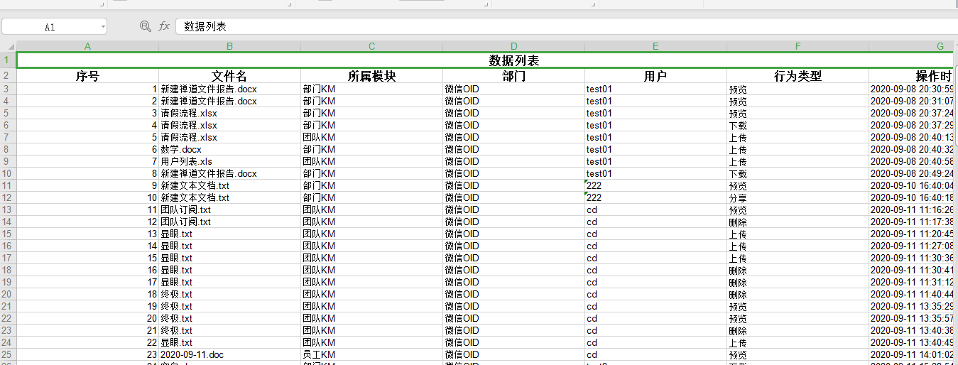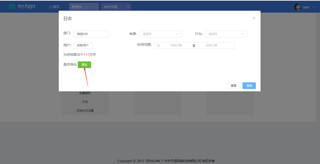 企业知识管理员可通过条件检索出对应的文件数量,导出报表查看