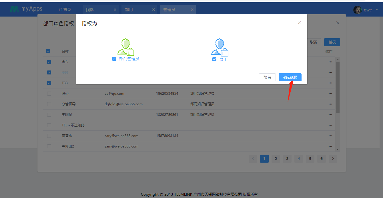 第三步:选择多个用户数据,点击授权按钮,对多个用户进行授权